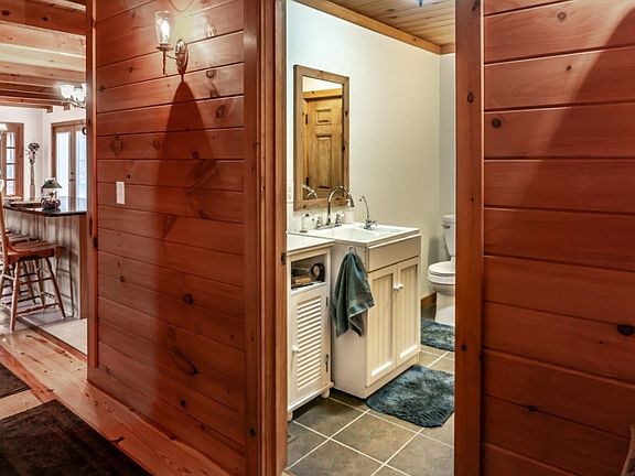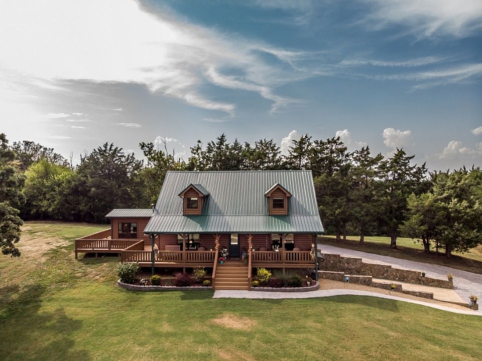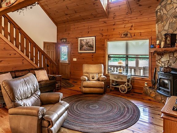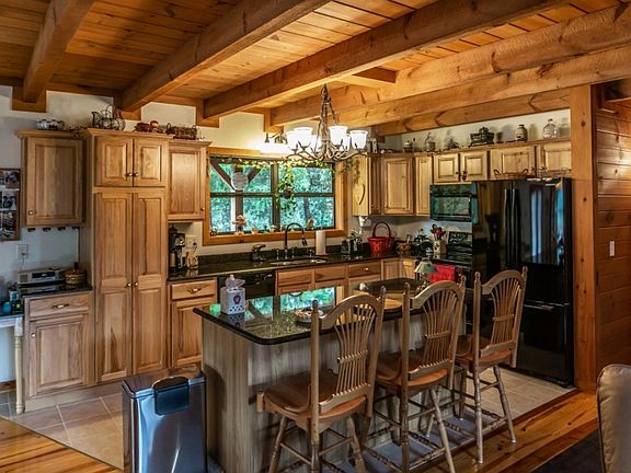 Tranquility awaits as you pull up the wooded meandering drive to this beautiful log home perched on the hill. This custom built log home is nestled on nearly 34 acres of rolling farm land and woods. Home features 3 bedrooms, 3 full baths, main floor master bedroom with large bath and walk in closet, main floor laundry/mudroom with exterior door and another full bath. Nice open kitchen with granite counter tops, beautiful hickory cabinets with easy close cabinet doors and drawers, and kitchen island with bar top seating. Great room features cathedral ceilings, stone fireplace, and open to second level loft. Upstairs you will find the loft area family sitting room, two more nice sized bedrooms and another full bath. Full unfinished basement with plenty of dry storage, second washer hookup for all the farm work clothes, and plenty of room to add additional living area. Outside on the amazing wrap around porch is where you will want to stay and enjoy the beautiful mountain views, the peace and tranquility, and the wildlife. There is also a large garage/workshop with plenty of room for all your hobbies and toys. Heated and insulated, concrete floor and high ceilings provides the space you need to work on anything you would like. All of this and situated on nearly 34 acres of privacy.