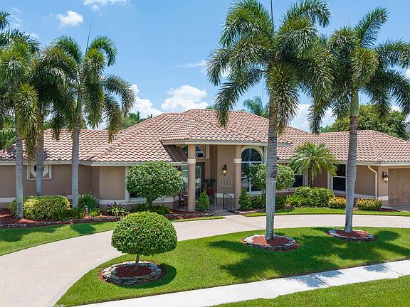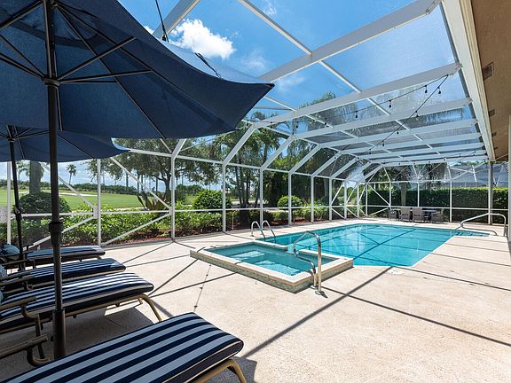 Located in the heart of North America's premier equestrian community, this luxurious Mediterranean-style home offers inspiring spaces and an escape from the mundane. Impeccable finishes are plentiful on the interior of this completely remodeled 4 bedroom, 3 1/2 bath CBS pool home. Hand-scraped hardwood flooring on a diagonal begins at the entryway and continues throughout the main areas of the home including the family room, dining area, living room, and the impressive chef's kitchen with island and breakfast nook. Two nearby guest bedrooms both feature ensuite bathrooms. On the opposite end of the home is the powder room, an office/4th bedroom, and the master suite with two expansive walk-in closets and an extravagant bathroom. New Impact Window & A/C Unit in 2022! The updated interiors feature a soft neutral palette with exuberant splashes of color thanks to the designer wall coverings and many windows that help the spacious indoor areas seamlessly transition into the outdoor living spaces which include 2 covered porch areas with pecky cypress ceilings and an adjoining seventy-foot wide lanai over the heated spa and pool. Situated on a manicured and beautifully landscaped lot, the setup takes optimal advantage of Florida's natural beauty and offers captivating views of the 10th hole at The Wanderers Club and breathtaking sunrises. Located just 25 minutes from Palm Beach International Airport in the western part of Wellingon, Lakefield West is just minutes from the Global Dressage and Winter Equestrian Festivals, fine dining, shopping, parks, and recreation. If a retreat from the bright lights of city life is what you desire, then you just discovered a great place to call "home" before the upcoming season. Welcome home!