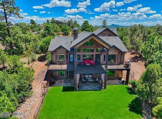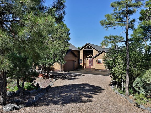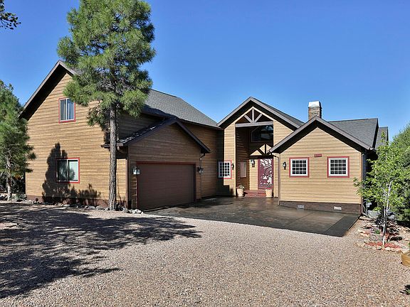 Do you love sunsets? Located in Sierra Pines, situated high up on a 1.25 acre parcel is the most incredible 4,200+ square foot custom home with four bedrooms, 4.5 baths and an oversized two car garage. From the 1,200 square feet of outdoor living space (and out nearly every window) the long-range views are some of the most spectacular in the White Mountains! Two master suites with nicely appointed bathrooms - main master has large his & her closets. Spacious kitchen features knotty hickory cabinetry, double ovens, induction cooktop, warming & microwave drawers along with abundant pantry storage. Exterior engineered wood siding is only 3 years old. Get a full list of upgrades from your Realtor, but a few more items are: Kinetico full house water system with RO filter, central vacuum, game/craft room with in-floor heat and kitchenette, 10' ceilings downstairs, wheelchair assessable, travertine tiled patio, premium Trex decking with no joints, stacked-stone wood-burning fireplace insert, stereo speakers inside and out and whirlpool tubs. This home works very well for multiple family usage.