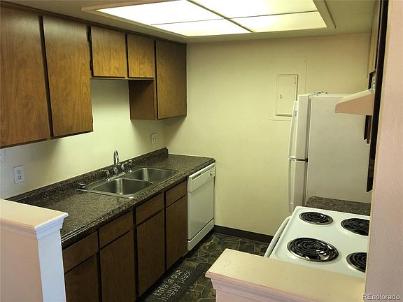 Top floor condo with brand new carpet. The unit provides an open floorpan, wood burning stove. The location is also hard to beat with great access to Parker Rd and I-225. The light rail stop is about a mile away. Access to the unit is on the backside of the building that backs to open space! Please follow Covid showing rules. Wear a mask, limit touching of surfaces and only three people allowed in the unit at a time.