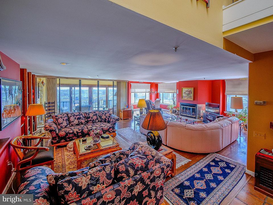 Experience luxury living in this stunning two-story corner penthouse perched along the majestic Brandywine River. Offering over 3,000 sq. ft. of elegantly designed space, this sophisticated residence boasts breathtaking panoramic views of the water, the Delaware Memorial Bridge and the Wilmington skyline from multiple balconies and a sun-drenched enclosed Sunroom with floor-to-ceiling windows. Step inside the grand foyer, where ceramic tile flooring leads you into an expansive dining room bathed in natural light from the large windows, perfect for hosting unforgettable gatherings. The large kitchen features custom cabinetry, an oversized center island, and abundant counter space to inspire culinary creativity. The 18-foot great room is a showstopper, offering rich hardwood floors, a wood-burning fireplace, elegant built-ins, and a cozy dining area. Extend your living space into the Sunroom, where 9-ft. sliding doors invite in spectacular river and city views, making every moment feel serene and special. Upstairs, the owner’s suite is a private retreat, complete with a spacious dressing room, fireplace, multiple walk-in closets, and a spa-like bathroom. Wake up to tranquil water views from your private balcony. Two additional generously sized bedrooms, a full hall bath, storage closets, and a convenient laundry room complete this level, ensuring comfort and practicality. Additional highlights include custom blinds and window treatments, two deeded parking spots, a separate storage unit, and ample guest parking. Nestled in a pet-friendly building, this exceptional penthouse is just moments from Brandywine Park, Rodney Square, I-95, Route 202, restaurants, walking trails, and water activities. Don't miss this rare opportunity to own a one-of-a-kind waterfront penthouse—where every season brings a new fabulous view of the Brandywine! Schedule your tour today!