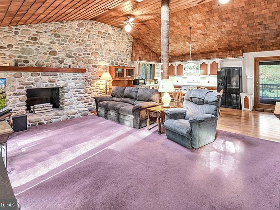 Lovingly handcrafted from local materials and inspired by the beauty of its surroundings, this impeccable raised ranch is a hidden retreat. Built in 1980 and offered now for the first time ever, Fieldstone Hill is a sun splashed oasis in Upper Bucks County. It is evident from first glance that much care was given to the construction and layout of the home. From the idyllic setting that offers seclusion without isolation, to the convenience of the single floor layout and the large detached barn/garage, you’ll find everything you need in one tidy package. A large living room with floor to ceiling stone fireplace opens gracefully to the eat-in kitchen, with a glass door to an enormous deck overlooking the rear acreage. The master suite boasts its own fireplace with a unique circular design, along with a walk-in closet and en suite bathroom. Two generously sized bedrooms share a hall bath with an exposed stone wall and a soaking tub. The partially finished lower level includes a 1-car garage, workspace and an office. The exterior amenities include a workshop, smithy, and detached garage. A small pond is located near the house, perfect for enjoying afternoon birdsong or the quiet calls of frogs in the evening. Three Mile Run creek crosses the lower acreage and brings more wildlife to the property for your enjoyment. Located close to commuter routes and all major necessities, you’ll fall in love with the charm and character of Fieldstone Hill.