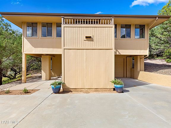 This is a truly hidden gem. Located in one of south Prescott's most desirable neighborhoods, it is nestled in the secluded pines yet only only 5 minutes from the Courthouse Square. Come enjoy the beautiful long-distance panoramic views of surrounding trees and the Prescott National Forest from the deck of this lovely, contemporary styled home. The seller has made some wonderful upgrades that include a kitchen remodel, new flooring throughout, and expanded master bedroom. This would be a perfect ''lock-and-leave'' getaway vacation property or peaceful full-time home.