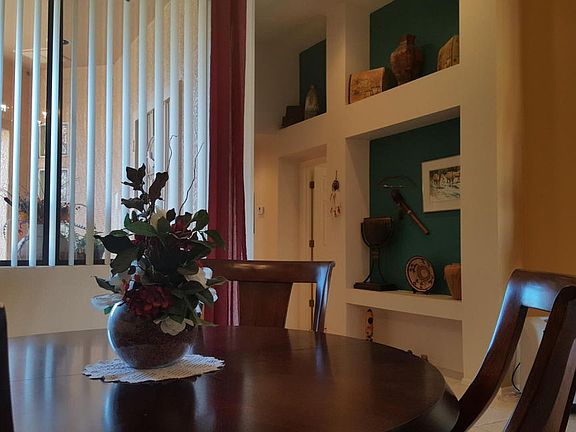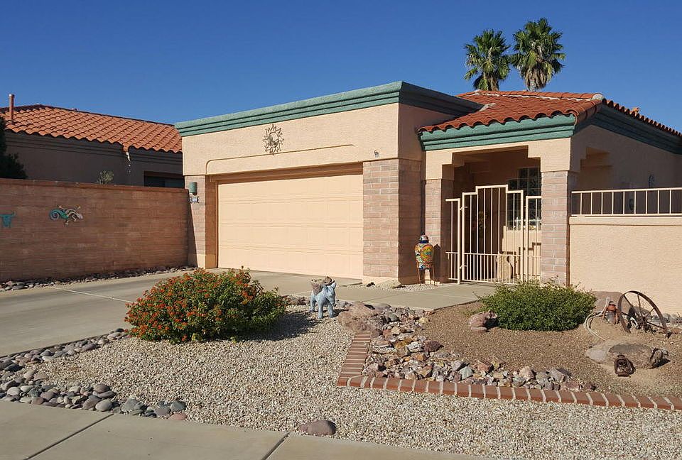 An exceptional location with Mountain views over looking the water hole of the 13th fairway of San Ignacio golf course. Tiled floors in all the right places and newer carpeting in the 2 bedrooms and den. Golf cart parking area now a small workshop in the 2 car garage.