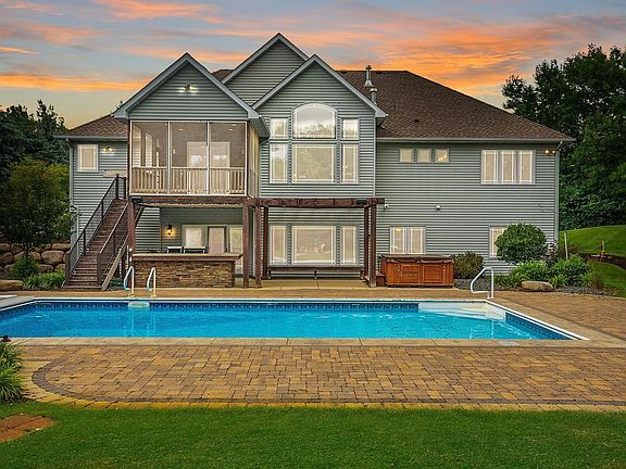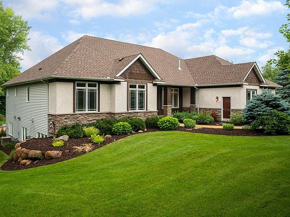Discover luxury, lodge-style living in this expansive rambler on 2.58 acres with 3 car heated garage at Cedarwood Estates in Credit River This custom-crafted home blends extensive use of natural woods, stone, slate and tile with oversized windows to provide a welcoming atmosphere with exceptional views of its professional landscaped grounds and mature trees. This walkout rambler on a tiered lot is perfectly placed to overlook its park-like backyard and beautiful inground 20x40 pool surrounded by an expansive concrete paver patio. Step into your inviting pool or prepare chef-style meals and refreshing cocktails at its outdoor cooking area w built-in bar. The relaxation continues as you gather around the generous size concrete flagstone style fire pit. Upgrades and top of the line appliances throughout. From the private, quiet acreage to the stunning pool and plenty of space to play, this home has endless features that stand out above the rest. A true peaceful, rejuvenating retreat!