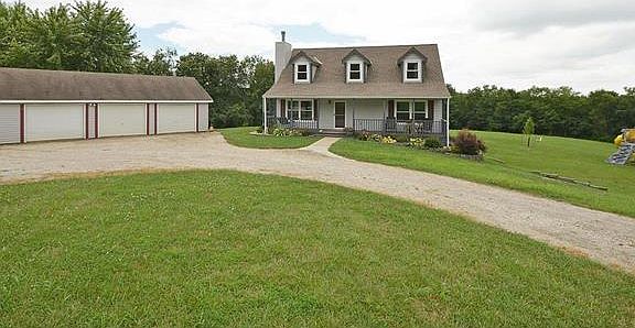 Gorgeous 1.5 story home on 7.98ac of scenic countryside! Front porch perfect for relaxing! Living room w/ stone fireplace, country kitchen w/ hardwood floors, custom cabinets, s/s appliances & pantry, dinette w/ access to large back deck w/ pergola & formal dining room w/ access to smaller covered deck. Spacious master bedroom w/ walk-in closet & master bath w/ standing tile shower. Huge finished walkout basement w/ family room & fireplace. Great deer/turkey hunting! Core Engineer property borders home on two sides