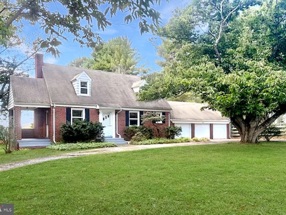 Charming all-brick Cape Cod set on a picturesque one-acre lot with beautiful views. This home offers 2 bedrooms, 2.5 baths, and two versatile bonus rooms. Features include new garage doors, a spacious 3-car garage, and a large circular driveway. The finished basement provides walk-out access to the outdoors. A fantastic opportunity to build equity and make this home truly your own with personal updates and touches.
