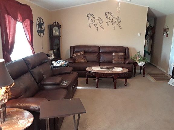 A 2009 Solitaire Mobile home. It has been well taken care of. It has front & back decks added to trailer. The carport & 2 car garage goes with the trailer. It has its own well and septic system. This home sits on a high bank overlooking the Chikaskia River. This forms the Blackwell Lake. REALTORS NOTE: This property has not flooded & is selling chattel only that is on surface of land (lots). Lots are owned by the City of Blackwell. It is situated on four leased lots & have been paid through July of 2021.