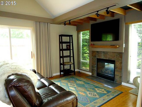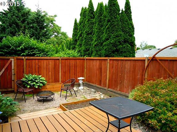 Back On Market! Great location to shopping & freeways !Only one neighbor!Open vaulted great room plan w/bamboo floors, .2 private decks, one over looking beautiful private landscaped grounds, room to garden, 1 of 7 units on 1.5 AC of well manicured common area. Property approx 165 ft.off Boones Ferry. New tile in bathrooms. Extra space to park in driveway. Move right in.