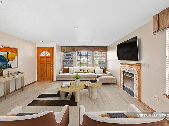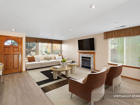 Stunning turn-key home with private oasis. As you enter the home you'll be greeted by an ambiance of warmth from the gas fireplace complemented by an abundance of natural light. This fully renovated kitchen was remodeled 2 years ago and is adorned with granite counter-tops and contemporary appliances as well as new flooring throughout. Both bathrooms and the outdoor patio boast elegant tile flooring, adding a touch of luxury. Immerse yourself in this backyard oasis that features well appointed landscaping with a palm tree, perennial blooms, and an efficient irrigation system. The covered patio ensures you can relax and enjoy the outdoors regardless of the weather. To add to its appeal, this home is prepared with an electrical system primed for a generator. Its prime location offers proximity to Nike, Intel, Costco, shopping malls, and numerous parks. This residence truly epitomizes modern living with a touch of nature!