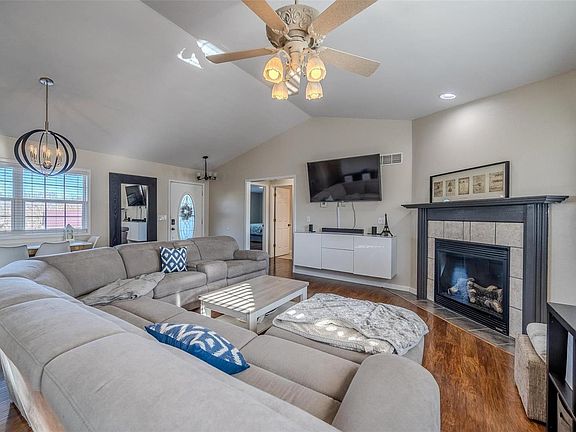 Cozy 3 bed 2 bath home located in the Established Hunters Point Subdivision. This well taken care of home has had a New Metal Roof Installed in 2024, New water heater in 2024. Chain Link fenced back yard. The Kitchen has Granite countertops, and plenty of Cabinets for storage. Bathroom vanities have Onyx sink tops installed. Extra Large Master Bedroom, with personal bathroom and a jetted tub. Living room is spacious with a gas fireplace. Half bath in the hallway for guests. THE PERFECT starter home or great for a Small family. Located close to FLW West gate and easy access to I-44.
