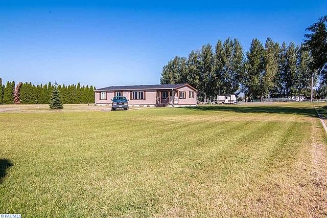 Country living at it's finest! Over 2100 square feet on 2.5 acres of flat land in Kennewick. Multiple pastures already setup and fenced. Underground sprinklers throughout the property to keep everything super green all summer long. So much space to roam and store your RV and all the other toys! Inside you'll find an amazing kitchen plus separate living areas and 4 bedrooms plus an office space. Come out to the country - it's quiet, peaceful and just what you need!