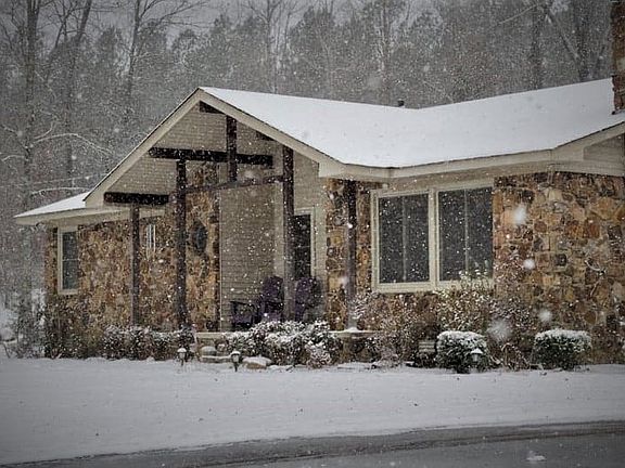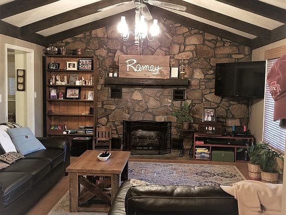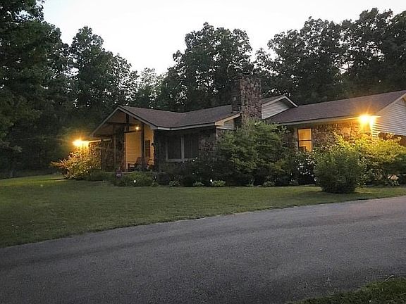 TRANQUIL AND PRIVATE! A picturesque ranch style nestled on it's very own secluded hilltop constructed of stones from nearby Cedar Creek. This peaceful setting may present itself with an occasional turkey or deer and a star filled night. The house features energy efficient replacement vinyl windows, architectural shingles, a 15x30 covered patio, a tankless gas water heater, a master suite with a tile shower and 20x30 detached workshop.