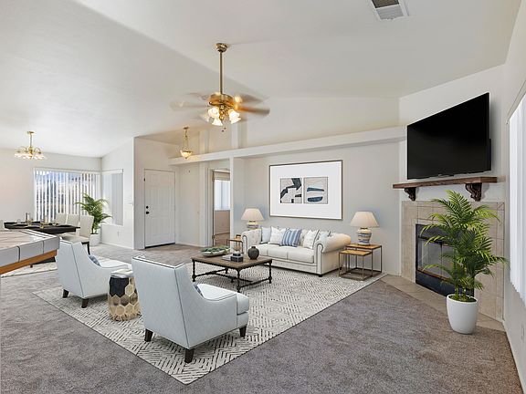 This home is not only aesthetically pleasing but also functional, with a convenient walk-in pantry and a dedicated laundry room. Stay comfortable year-round with the fireplace in the living room and ceiling fans throughout. The three-car garage and RV access provide plenty of space for all your vehicles and outdoor toys.