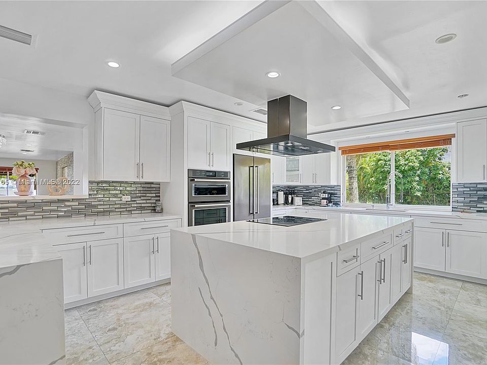 Luxurious 5 bed/ 2 bath country estate with amazing pool on 1.26 green acres. Totally remodeled throughout including impact windows and doors, kitchen island with dropdown marble, modern shaker cabinets, Kitchenaid stainless steel appliances including built in stovetop with hood, brand new Maytag washer and dryer, large format 32 x 32 porcelain tile flooring throughout, marble tile in master bathroom, natural stone backsplash in second bathroom, brand new 5 ton and 3 ton Trane A/C’s, modern stone backsplash in Florida room, glass mosaic stone backsplash in kitchen, walk-in closet with custom cabinetry, recessed lighting throughout. Property has a covered terrace with a pool table, wall mounted tv and shutters throughout.. Amazing pool with stunning and ample stone deck and deck jets.