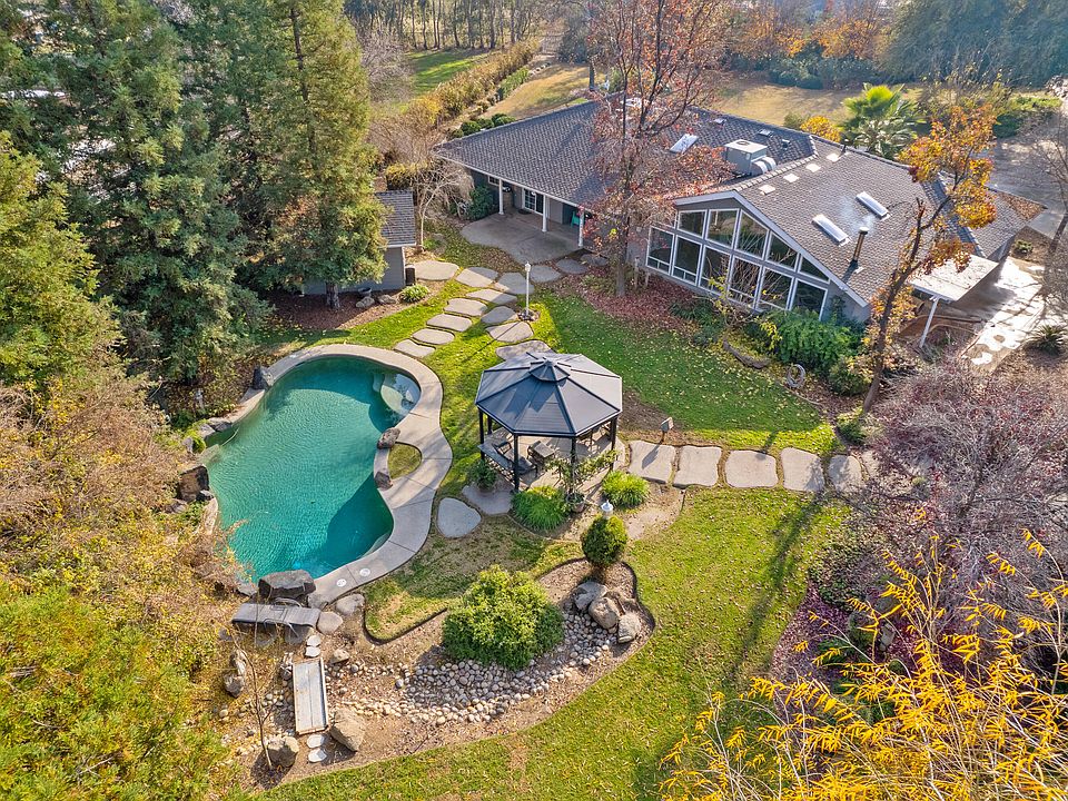 The property you've been waiting for, Country living with all of the amenities! The mature landscaping greets you as you enter your private gated entrance on 2.5 acres. Offering 3 bedrooms, 2.5 bath. The open concept to all living spaces is perfect for entertaining, but separated just enough for everyday intimate living. Kitchen is fully equipped with stainless steel appliances and upgraded countertops. Exposed beams in the living rooms with an abundance of natural light. Owners suite offers dual vanities, step-down shower and walk-in closet. Separate building offers opportunity for office space, play room or hobby room with a half bath attached. Sparkling pool with waterfall feature is the focal point of the backyard. Horse set-up offers 7+ stalls with arena and so much more! A Bonus Building for Tack room, equipment or office space. Truly a must see to appreciate and take in all that it has to offer! This property has everything you need for country living, including the OWNED SOLAR!!!