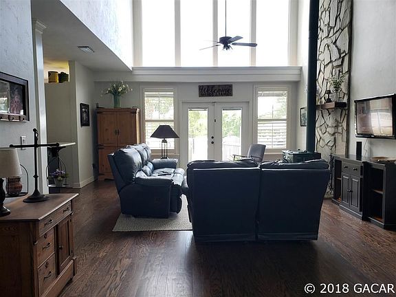 Beautiful farm style home with 5 acres and lots of wildlife. Within minutes of city conveniences of High Springs & Alachua! This 1997 custom built home lends to a relaxing refuge from city life but is only a 20 minute commute to Gainesville or Lake City. This home offers over 3000 sf of open living space with the master bedroom downstairs. The kitchen has custom wood cabinets, stainless steel appliances, gas range & granite counter tops. Main floor is real hard wood floors with tile in bathrooms & laundry. The 4th bedroom is smaller and can be used as office/study/nursery. Upstairs has 2 bedrooms 1 bath and a den/playroom with a laundry shoot as well as a loft space looking out over the great room and floor to ceiling windows to the pool and back pasture area which is simply beautiful! You can enjoy the serene outdoors by relaxing on the front porch, back deck, under the cabana or poolside! This home is looking for it's next family to enjoy and entertain!
