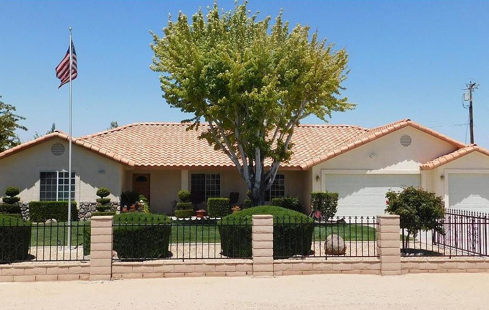 Beautiful home in Apple Valley Knolls. Over 2400 square feet of living space with lovely front and back landscaping surrounded by a block wall with wrought iron fencing. You will love all the living space this home has to offer with 4 bedrooms including 2 master suites, 3 bathrooms, walk-in closets, living room plus family room, formal dining room and a dining area. The kitchen has lots of cabinet space, 2 pantries and a breakfast bar that overlooks the dining area. HVAC system has been completely replaced and upgraded including ducts and HEPA filter. A nice covered patio with landscaped rear yard for the family to hangout and bbq. Detached garage/workshop for those that like to tinker around in addition to RV parking and 2 storage sheds for all your toys. Additional amenities include indoor laundry, tile roof, tile floors, ceiling fans, upgraded light fixtures, breakfast bar, dual sinks in master, grass, block wall with wrought iron fencing, mature trees, and concrete curbing.