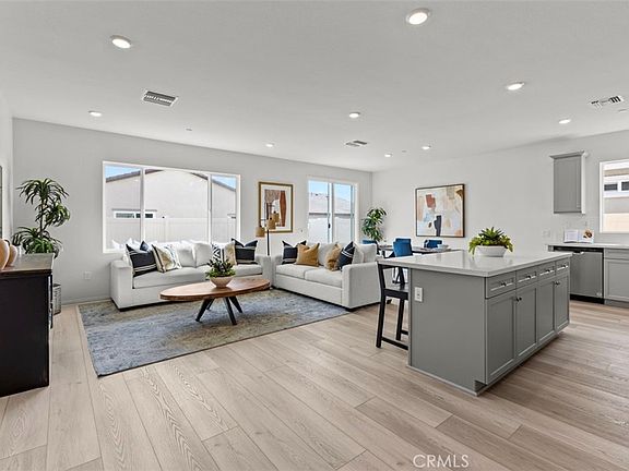 Split floor plan features two bedrooms near the entrance and the primary bedroom in the back of the home for ultimate privacy. As you enter the home you are instantly greeted with the stunning luxury vinyl plank floors that continue through the great room, kitchen, hallways and main restroom for a cohesive look. Spacious kitchen showcases modern, sleek, gray shaker cabinets, with gorgeous quartz counters, and an oversized kitchen island. The three bedrooms feature plush carpet. Centrally located with easy access to the freeway, shopping, dinning, and walking distance to elementary and high school.