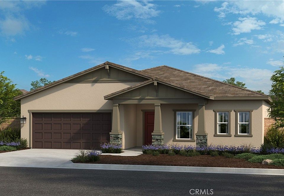 Beautiful single story home in the breathtaking community of Spring Mountain Ranch which is currently under construction. 4 bedroom, 2.5 bath home with generous great room and Covered Patio, perfect for entertaining, and family gatherings. Large kitchen island, Quartz countertops, energy-star appliances make this home the perfect fit. Located walking distance from 6 acre community park, and multiple hiking trails. Upgraded flooring. Bring your clients in right away as this home will not last. Photo is a rendering of the model. Buyer can either lease or purchase the Solar.