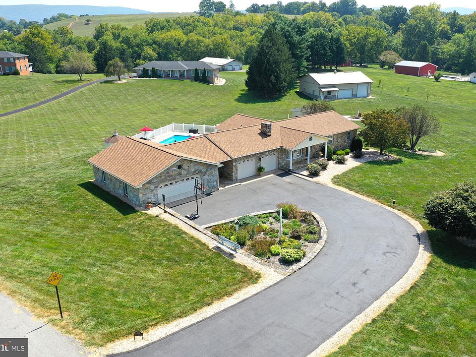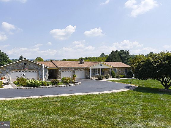 ***Offer deadline is Saturday 8/31 by 9:00 AM*** Welcome to this beautiful custom-built stone rancher, nestled on a sprawling 2.25-acre lot in Boonsboro! This property offers a spacious 56' x 42' detached garage with electricity, a loft area, high ceilings, and both a 16' x 9' door and a 12' x 12' door, making it perfect for storing your RV, cars, boats, and more. The home itself boasts numerous upgrades, including a new roof in 2024, extensive landscaping, Brazilian cherry hardwood floors, crown molding, Neikirk custom blinds, central AC, interior paint, fixtures and much more! As you step inside, you'll be greeted by a cozy living room featuring a bow window and a stunning floor-to-ceiling stone fireplace with a pellet insert. The kitchen is equipped with ample cabinetry, Silestone countertops, and stainless steel appliances including a refrigerator, stove, dishwasher, and microwave. All of which are less than four years old. The sunroom, with its vaulted ceiling, doubles as a dining room and offers a bright, inviting space to enjoy meals. Step outside to the patio and take in the view of the in-ground saltwater pool, complete with a new pool liner in 2019, a sand filter in 2021, and a pool pump in 2023. The main level also features a primary suite with a private bath and direct access to the deck, two additional bedrooms, a full bathroom, and a mudroom, and sitting room completing the first floor. The finished basement adds even more living space, with a large family room featuring a wood burning fireplace, two bonus rooms, a laundry room, a half bathroom, and a storage room. The basement also offers walk-out access to a lower-level patio. The property has beautiful hardscaping and landscaping throughout including a water feature. Additional amenities include two attached garages, a breezeway and a shed. Well pump replaced 2023. Conveniently located near Old National Pike (Alt 40), this home provides easy access to Hagerstown, Frederick, I-70, and I-270, and is served by desirable Boonsboro schools. Don’t miss the opportunity to make this wonderful home yours!