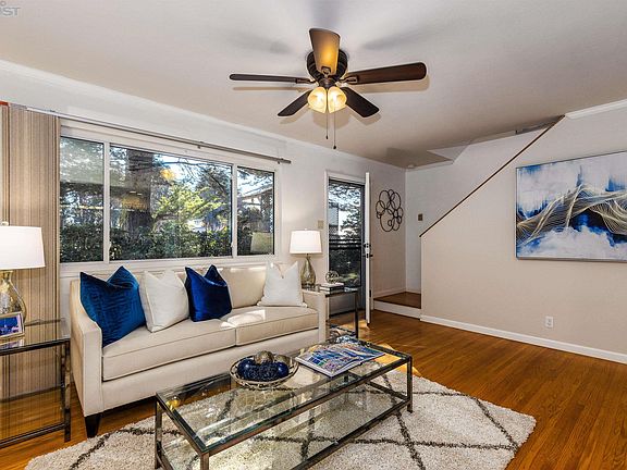 Location! Location! Location! This picture perfect townhouse style condo is tucked away on a quiet lot & is within walking distance of town, shopping, schools & Lake Chabot! Great kitchen with granite counters & storage galore opens to your private deck with hot tub! The 2 BIG bedrooms with large closets - one has closet organizwes & bonus storage space! Both bathrooms have been remodeled & lower level bath has laundry area with newer wasjer & dryer included. Beautiful hardwood floors highlight the living room, bedrooms & stairs! You'll love the large yard area in front with a pool, picnic area & basketball court too!