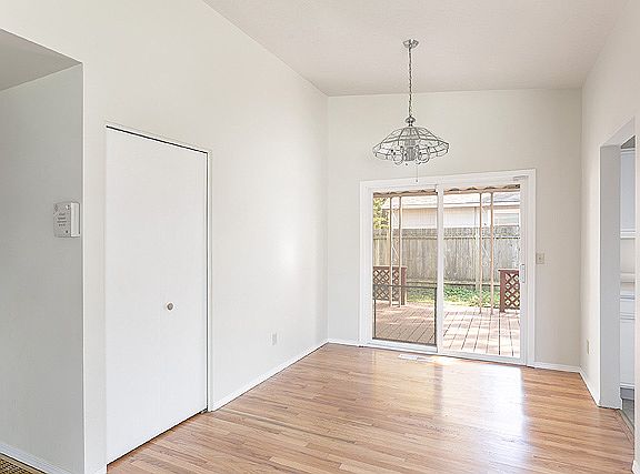Spectacular triple mint showcase 3 bedroom home! Grand in scale with high ceilings throughout, there are also 1.5 baths. Approx 1,032 square feet with the highest quality finishes and details. Brilliant sunlight floods the living room with a fireplace. It is truly a home to be seen. In addition, this elegant home boasts gorgeous refinished floors, new exterior + interior paint and a large covered deck off the dining room.