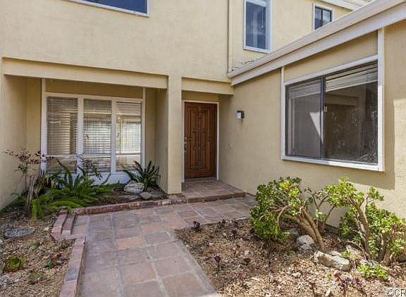 Steps to the beach from this highly desired Beachwalk Home. Largest Floorplan with 1 bedroom down and 1 full bathroom down. Enter into the gorgeous private courtyard. Large open living room with cozy fireplace, is open to dining room with sliding glass door to sun drenched backyard. Kitchen with newer stainless steel appliances, new Quartz countertops, recessed lighting and beautifully painted cabinets is open to family room that looks onto backyard. Hardwood flooring at entry and kitchen. Three large bedrooms upstairs have vaulted ceilings and show light and bright. Master suite with two closets, ceiling fan and hardwood flooring. Open floorplan is very inviting. Very quiet interior location. Steps to the sand, schools, shops and restaurants.