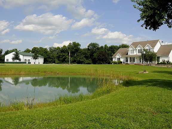 BEAUTIFUL HOME ON A PRIVATE 5.8 ACRE LOT! Features a gourmet kitchen, granite transformed counter tops/island, updated cabinets, hearth room w/fireplace that opens to deck for entertaining. Many updates throughout! Huge great room w/lots of windows, fireplace & built-ins. Oversized master suite! Finished basement w/wet bar, fireplace, bathroom, tile floors, open to media/game rooms. Oversized bedrooms. 24x24 deck overlooking private back yard. Beautiful front porch with view of stocked pond. 40x60 outbuilding, Dir: South on J Hwy to 195th Street, east to Sunsine Lane, south to home.