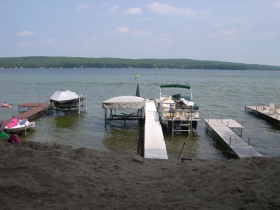 Great location on the west side of Hubbard Lake with 21' of frontage out of the total 500' shared frontage in Association/Subdivision for your dock and hoist. Turnkey cottage with 3 bedrooms, 2 baths. Master bedroom lakeside with private bath. Open kitchen, dining living room with a 6' slider opening to large wrap around deck that views the lake. Cottage is same side with no streets to cross.