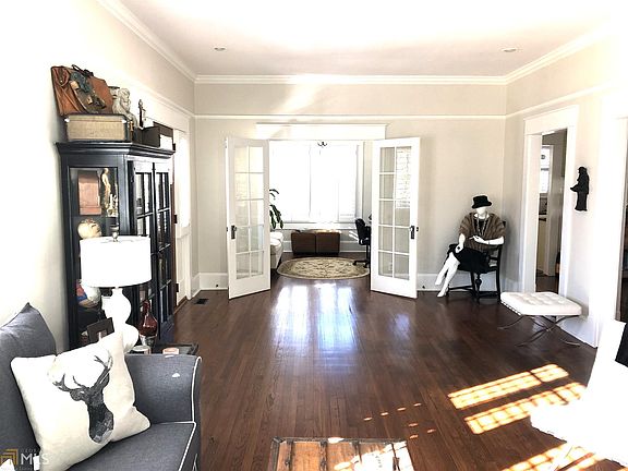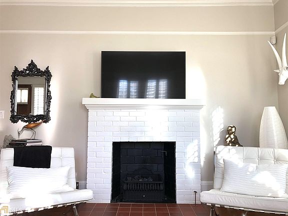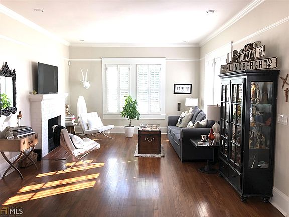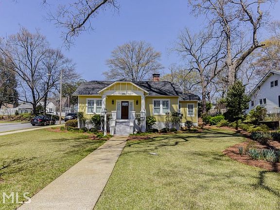 Charming renovated bungalow on corner lot! Historical Concepts redesign of original 1921 construction - Original refinished hardwood floors - Master has shiplap walls and fireplace - Master bath w/double vanities - walk in shower - Shiplap - His & Her closets - Hall bath w/original club foot tub - Kitchen w/farm sink, Jenn-Aire appliances and attached mudroom w/pantry and laundry - Large living area w/fireplace - Backyard with brick courtyard setting and fenced - Detached 1 car garage - Plantation Shutters - Walk to Woodward, Marta and Dining! Easy airport Access