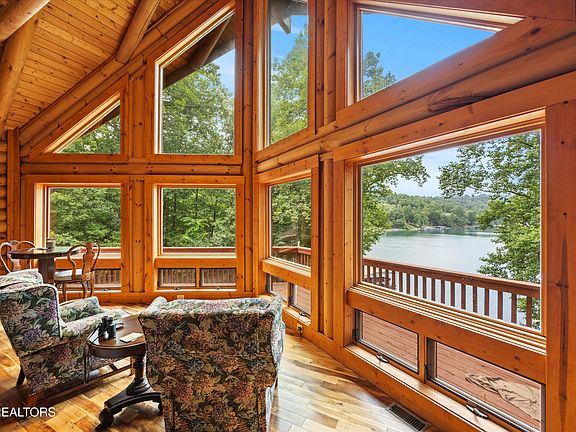 Looking for a great summer home with potential rental income - ask for the proforma with this property- the numbers are high! Welcome to your dream waterfront retreat in a cove of Big Creek, offering 240 feet of pristine shoreline on Norris Lake! This stunning home features a brand-new roof and a wraparound porch, mostly covered, providing the perfect space to take in breathtaking lake views, grill out, or soak up the sun. The main-level master suite offers a walk-in shower and jetted tub, creating a private oasis. Cozy up in the winter by the wood-burning stone fireplace, where you can enjoy the beauty of the lake from the comfort of your living room. As you enter, you'll find a flex space currently used as an office or bunk area, a walk-in coat closet, a half bath, and a spacious living room with soaring cathedral ceilings. The large kitchen and dining combo is perfect for hosting gatherings, with a screened porch just off the dining area for additional entertainment space. A mudroom, pantry, ice maker and second washer/dryer hookup add extra convenience. Upstairs, a large bonus room with two futons provides extra sleeping space, while a private bedroom with an ensuite bath, walk-in closet, and private deck is perfect for morning coffee with a view. Across the hall are two additional bedrooms, a full bath, and a charming children's nook. The finished basement offers even more space with a living/gaming area, two additional bedrooms, a full bath, a workout room, and laundry. The unfinished one-car garage provides ample storage for lake toys, ATVs, or more entertainment space. Additionally, the home includes a detached oversized two-car garage, ensuring plenty of room for vehicles and storage. This incredible property comes with a boat dock, lift for a pontoon, and jet ski docks included, so you can launch directly into Norris Lake and enjoy endless boating, fishing, and water activities. Conveniently located near Indian River and Whitman Hollow Marinas, and just a short drive to shopping and dining, this home is perfect for full-time living or a vacation getaway. Don't miss this rare opportunity to own a slice of paradise on Norris Lake—schedule your showing today! There are more rooms and more storage however all photos could not be shared. Buyer to verify all information.