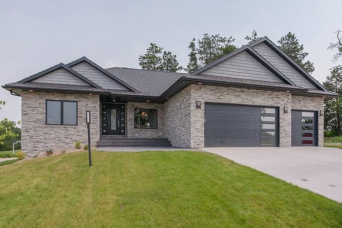 Contemporary & sophisticated 5 bed walkout ranch with tons of upgrades! Coffered ceiling in LR, vaulted in 4 seasons & lighted trey in MBR. Granite counters in kit & BAs. 2 fireplaces - LR fireplace with stone surround & built-ins with stone accent. Under cabinet lights in kit & wet bar. Chef kit with upgraded SS appl features 6 burner stove, 2 ovens + pot filler faucet. Luxury MBA with heated tile floors & tile shower. Walnut, tile & polished concrete flooring. Whole house sound. Heated garage. A must see!
