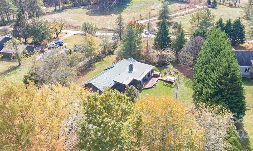 Updated farmhouse along iconic Everett Road with expansive views across the valley. Includes a 4200 sqft workshop, wooden storage shed and new 3 bay steel shed on 5 level acres. Home has newer updates: HVAC, gutters, metal roof, garage door, encapsulated crawlspace, new office and sunroom, a large expansive deck off of the sunroom with a salt water hot tub, and with a Generac generator tied into a propane tank. The workshop has a full bath, office, kitchenette, spraying room with vent, and two finished bonus rooms. Shop lights were recently upgraded to LED. 220 Amp plug, 2 phase with converter and a 4 phase plug. Mostly finished and wired for speakers, this is a dream workspace access by garage door and regular doors. Pasture is in the flood plain. Just minutes to town, Pisgah National Forest and Dupont State Forest.