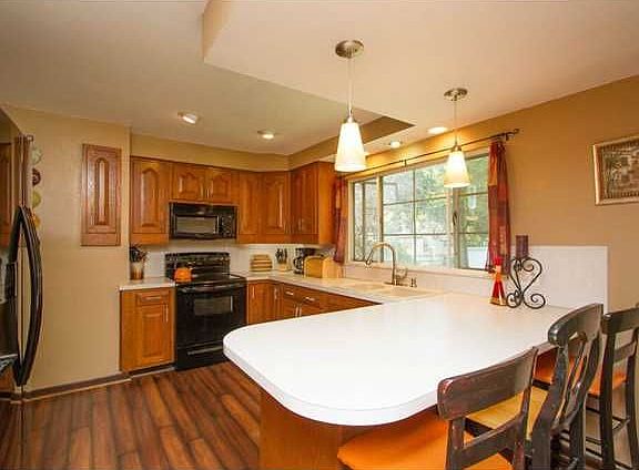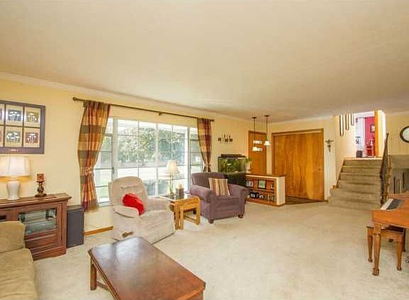 Sunny open split level. Family rm w/ brick woodburning fireplace & sliders to private fenced backyard & patio. Updated kitchen w/ snack bar, desk & newer appliances. Master w/private bath lower level 4th bed currently used as playroom, convenientlaundry & half bath. 2 car attached garage. New carpet being installed.