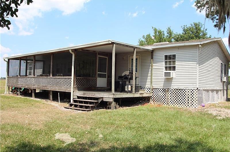 Lakefront 5 acres on Lake Buffum. 3BR 2 BA doublewide situated on rural lakefront. Enjoy beautiful sunsets from your screened porch overlooking the lake. Open floor plan, formal dining room, living room, split bedroom plan. Inside laundry. Great Lake for fishing and water sports.