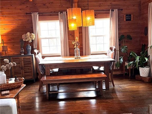 Need to get away from the hustle & bustle? You'll find this carefully designed custom built white cedar log home situated on 1.91 acres so welcoming. Step inside to the open living room that is filled with sunlight and relax by the woodstove fireplace. The fully equipped kitchen has plenty of storage and counter space and a corner breakfast nook with windows to view the countryside. There is a sunroom that can easily be a first-floor bedroom or office. The upstairs loft is the master suite. The fully finished lower level has escape windows in both bedrooms and bath. The laundry room area & utility room gives plenty of storage. Outside there is a 16 x 16 2-story shed, and an 8 x 10 shed for wood with a small deck, a basketball court, & a fire pit area.