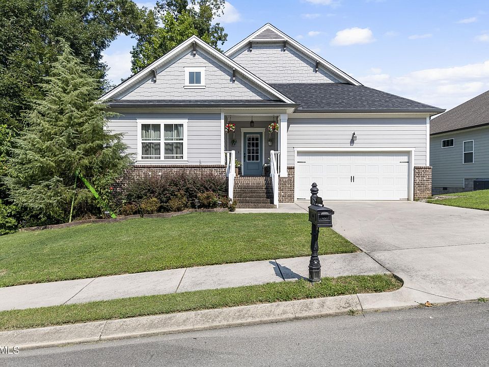 Pratt Home, 10 Year Structural Warranty, leaf filter gutter protection installed. Great location for working in Chattanooga or Knoxville. This home is in Timber Creek Subdivision and offers a quiet backyard retreat with a babbling creek. This ranch craftsman style home (Pratt Home- Belvoir Plan) offers a large open floor plan with plenty of room for entertaining family and guests. Granite counter tops in kitchen and oversized island extending out for additional seating, large walk-in pantry, pendant lights, and stylish tiled backsplash. The great room boasts 4 5/8 crown molding, gas fireplace with flush hearth to cozy up with your Pumpkin Spice Lattes. The dining area features chair rail with base cap wainscoting. Shaw 3 1/4 hardwood planks in main living areas, neutral carpeting in bedrooms and tile in kitchen and baths. Knock-down drywall finish throughout. Two large guest bedrooms with full bath in between. Privacy awaits in the large main bedroom with crown molding and the ensuite features an oversized walk-in shower tiled from floor to ceiling with bench seat, and 4' heavy glass semi-frameless shower door and features an 8' double sink vanity as well as a generous walk-in closet. Just off the entry is an oversized laundry/ mud room with access to the two-car garage which offers attic storage with pull-down for easy access. Over-sized standing room crawl space with easy access. Convenient to shopping, healthcare, grocery stores, mall, movie theater, and Cleveland Regional Jetport and easy interstate access.