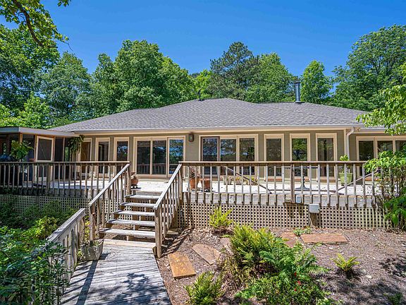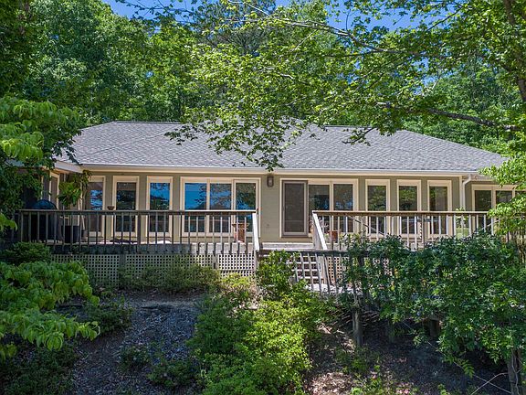 Expansive and elevated views of Lake Oconee — over 350 ft of Lake Frontage — facing due east. Picturesque view to undeveloped woodland across the lake. Exceptionally well built home constructed by an engineer in the mid 80's. Truly panoramic view of the lake into the living room. The home itself has a unique floor plan with two master suites; one on either side of the huge open main living area. Glass doors open from bedrooms to deck with three person cedar steam / sauna on screened sleeping porch off one master. Large recently renovated deck spans entire back of home. Full studio apartment with kitchenette, living space, bedroom space, bathroom, w/d, downstairs with private entrance. Full unfinished, studded, vented basement is ready to become extra bedrooms or giant media room. Deep water at max dock with capacity for multiple boats. Massive mature hardwoods on an acre plus lot. Paved driveway. 9” Poured Concrete Basement Walls, extensive landscaping, Irrigation system from lake. Enveloped by lake and hardwoods with exceptional privacy. Ideal place to kayak, boat, fish, bird watch, golf, hike and bike. Kayak to big water in one direction or quietly on the estuary for viewing abundant bird life. Multiple gravel roads for hybrid or mountain biking. Located on BRAG route. 7 championship golf courses within 20 minutes. Quick boat trip to the Ritz Carlton.