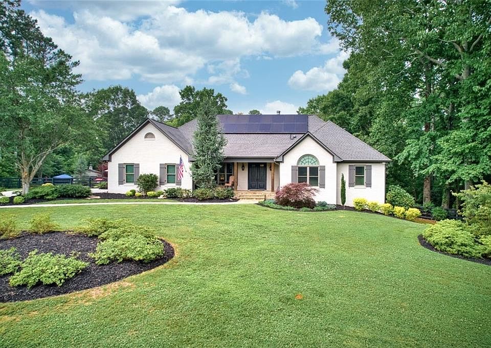 Welcome home to this one of a kind 3 acre property in Alpharetta! This gated, estate home has three separate fenced areas and a beautifully landscaped yard. You will LOVE the rolling lawn, the long, winding driveway, and the privacy of being distanced from neighbors! If you have been searching for a mini-farm, place for horses, dogs or other animals, you are in luck! There is room for the whole family and any pets you may have. The gazebo and fire pit patio area welcomes you into the back yard, and leads you to the heated, salt water, gunite pool which makes the backyard an oasis and perfect place for entertaining and relaxing! Towards the back of the property is a detached garage, which could be used for projects, as a workshop or as a garage. The property itself is a paradise you will never want to leave! The 4 bedroom/ 3.5 bathroom custom ranch home on a fully finished basement has been renovated throughout! The front porch is a welcoming place to relax! As you enter the home, the foyer is spacious and opens to the office. From there, you are immediately are drawn into the great room with custom wood beams and built in bookcases surrounding the gas fireplace. The open concept main floor is perfect for entertaining! The gourmet kitchen features granite countertops, top of the line stainless steel appliances, an oversized island with barstool seating and a prep sink. The large, banquet sized dining room seats 12+, features windows on all sides, and has a fabulous view of the backyard! The owner's suite has his/hers closets, and an updated spa bathroom with a free standing tub and a custom tiled shower. The two large secondary bedrooms on the main floor share an oversized bathroom with separated shower area. There is an additional powder room on the main for guests, as well as a spacious laundry room with storage. The finished basement has potential galore! If you are looking for an in-law apartment, a teen suite or a very flexible space, this is the basement for you! It is currently set up with a family/tv room, oversized bedroom with sitting area, a yoga studio, a full kitchen & dining area, a full bathroom, 2nd laundry and storage/workshop area. There are plenty of different ways to use the basement, for living, family, office or entertaining spaces! The solar panels recently installed help provide a huge cost savings for the home, and helps keep the electric bill low, even to heat the pool. Don't miss out on a chance to see this gorgeous property!