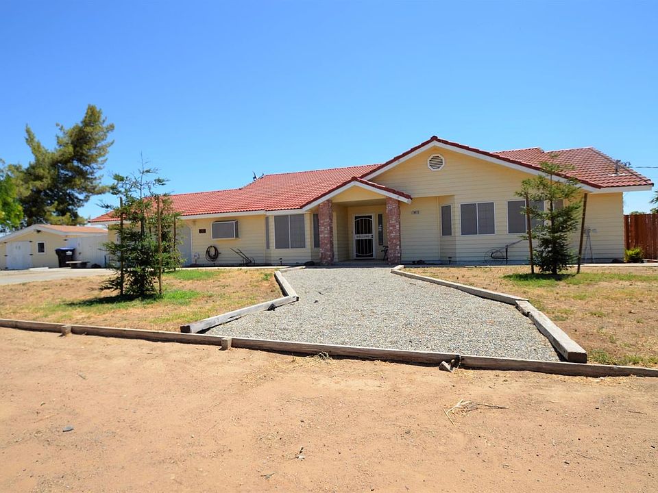 Immaculate, move-in ready home on acreage in Madera for sale. This 4 bedroom, 2 bath home features a beautiful kitchen with granite countertops, stainless steel appliances and dark-stained cabinets. The great room is spacious with a brick fireplace and cushioned hearth. Off the great room is a large covered patio with ceiling fans. The large master bedroom also has access to the covered patio. The 4th bedroom offers doors to the master suite if desired for a sitting area or office. On the property are RV hookups, and a detached workshop with doors on each end. A small potting shed is also off the patio. Out on the property is a hot tub, dog run, and small horse stall (playset on property is excluded from the sale). Horses are allowed on the property and a copy of the land use for this zoning is attached. Don't miss this wonderful property out in peaceful Lake Madera Country Estates.
