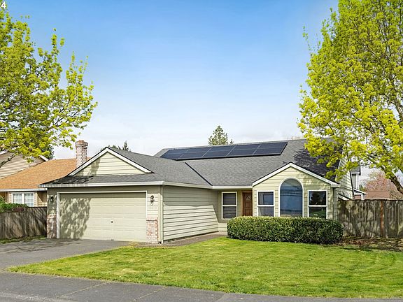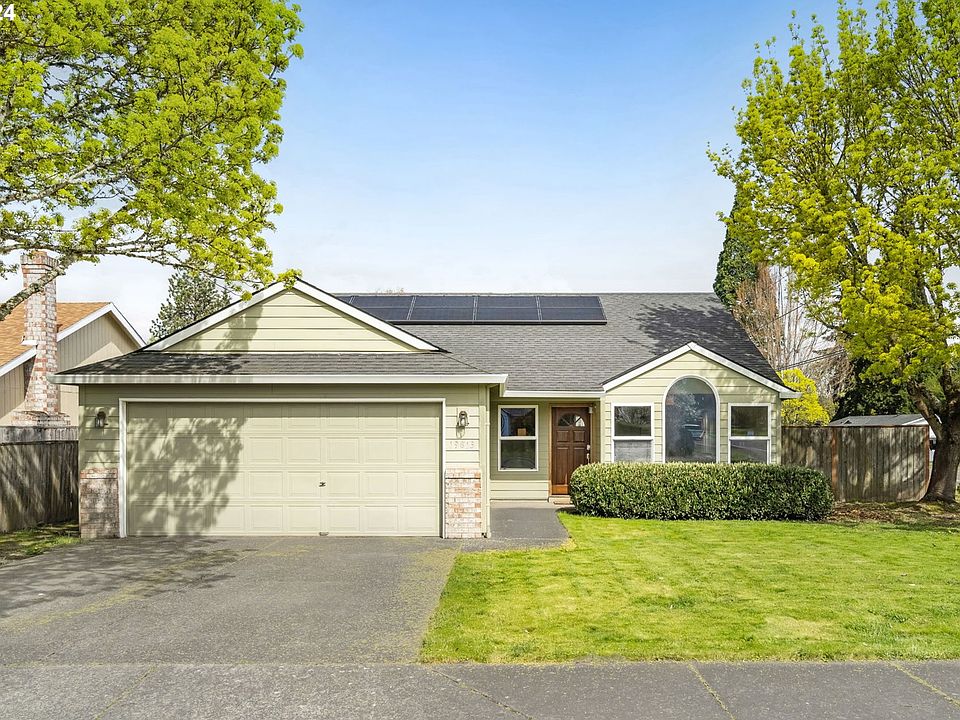 Multiple offers in: offers due by 4/8 at 1pm. Discover modern elegance in this move-in-ready single level ranch home. All-new flooring and paint throughout. Updated kitchen features quartz counters, tile backsplash, and new black stainless steel appliances. Enjoy tall vaulted ceilings, tons of natural light, and an open-concept layout. The primary suite boasts vaulted ceilings, double sinks, skylight, and double closets. Solar panels, new central heat/AC, and a large fully fenced backyard with patio complete this inviting retreat.