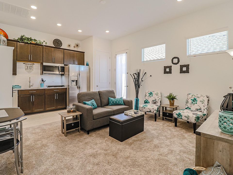 Brand new Lennar casita in Blue Horizons. Dark espresso cabinetry, 10' ceilings, washer/dryer in unit. Black stainless appliances, quartz counters, white subway tile bsplash. includes one garage stall. large bedroom. luxury bath. Casita has private entrance to fenced backyard, front porch and a shared door with main house (locked). Main house occupied by friendly, helpful quiet owner who is only in state 1/2 time. Utilites (water, sewer, internet, gas, elec) will be billed at $300/month as I will keep them in my name. Utilities are lower than an apt as they are shared with larger attached home. 2% county tax paid by landlord. Blue Horizons is a lovely community and easy commute to work and shopping. enjoy new large smart tvs in both the living room and the bedroom. cozy electric fireplace in the living and a bbq grill in the fenced yard, This is an easy stay if you are new here or building a home, or perhaps a traveling professional. Just bring your suitcase! Plenty of free street parking, driveway and one garage stall with an opener. King size comfy bed, all linens, towels, kitchen utensils, bedding, and stylish furniture included. Easy Peasy move in and helpful private landlord, flexible terms, short or long term. I have the same property across the street, so there will be more availability than just this one. Peets on a case by case basis and will require additional deposit/rent $500 security deposit to hold unit. $150 cleaning fee. Pets considered on a case by case basis and will require pet fee./remt