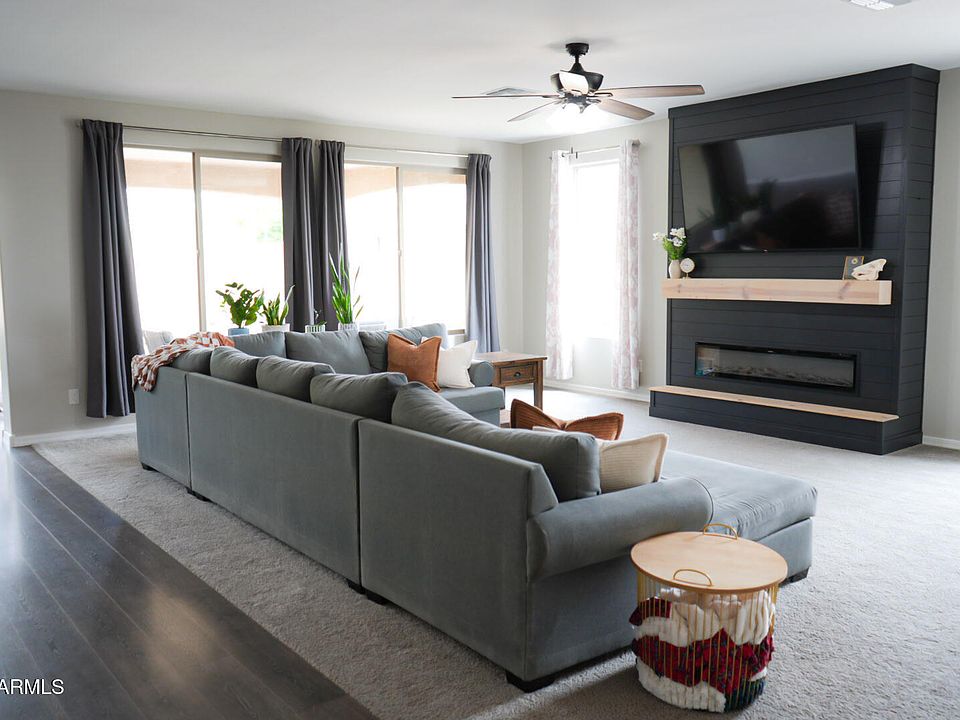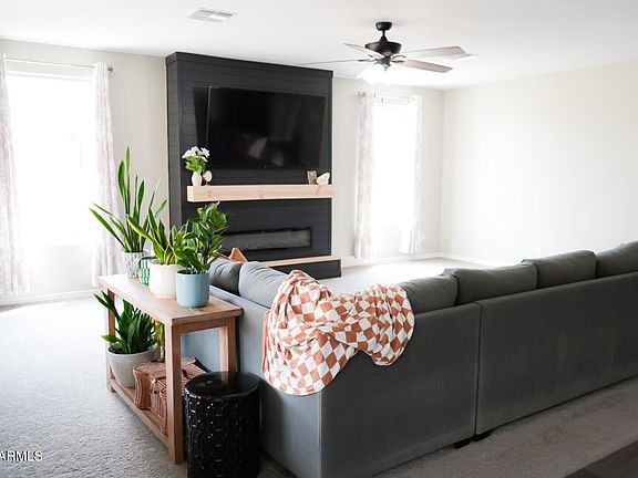 Beautiful 3-Bedroom, 2.5-Bath Home in the desirable Blue Horizons Community on large corner lot! This home offers a split floor plan, open kitchen, dining and living area with a fireplace. The gourmet kitchen is a chef's dream, complete with an island, gas stove and ample counter space. The additional flex space would make a perfect playroom or office! All three bedrooms have walk in closets. The backyard is finished with real grass as well as artificial and a covered sitting area! 3 car tandem garage. Solar