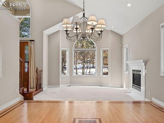 Welcome to a masterpiece of mountain living in the prestigious Woodmoor neighborhood. Nestled on a sprawling 0.75-acre lot with serene wooded surroundings, this 5,600-square-foot home harmonizes timeless charm with modern convenience, offering 5 bedrooms and 4.5 bathrooms designed for both comfort and sophistication. Upon entering, you're greeted by soaring ceilings and an abundance of natural light that dances through large windows, framing views of the lush Colorado landscape. The expansive open-concept living room features a cozy fireplace and flows seamlessly into the gourmet kitchen, equipped with stainless steel appliances, granite countertops, and a generous island perfect for casual dining or entertaining. The formal dining room, with its elegant touches and architectural details, sets the stage for memorable gatherings, while the main-level office or den provides a quiet retreat for work or study. Upstairs, the luxurious primary suite is your private sanctuary, complete with a spa-like en suite bathroom featuring a soaking tub, walk-in shower, and double vanity. The fully finished walk-out basement is an entertainer's dream, offering a media room, wet bar, and additional bedrooms, ideal for guests or multi-generational living. Step outside to enjoy the expansive deck and lower patio, where you can unwind, host summer barbecues, or simply soak in the tranquility of your surroundings. Recent updates, including fresh paint, new carpet, and modern light fixtures, add value and style, while the 3-car garage provides ample space for vehicles, storage, and hobbies. Conveniently located minutes from I-25, this home offers the perfect blend of mountain serenity and accessibility to Denver and Colorado Springs. Experience the charm, space, and elegance of this remarkable property—your forever home awaits.