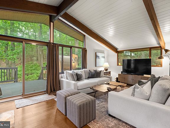 Don't miss this stunning property nestled in the treetops! The interior of this contemporary bi-level home features vaulted ceilings, hardwood floors and a stylishly renovated kitchen and primary bathroom. You'll feel like you're vacationing in a mountain retreat when you dine al fresco on the cobblestones or when you step into the new outdoor electric sauna. Seller has replaced some copper piping with PVC and added a Tesla charger, which conveys with the home. Added bonuses include a new roof with warranty, new water heater/refrigerator and washer/dryer, a three car garage, ample additional driveway parking and a private setting convenient to MD and PA commuter routes.