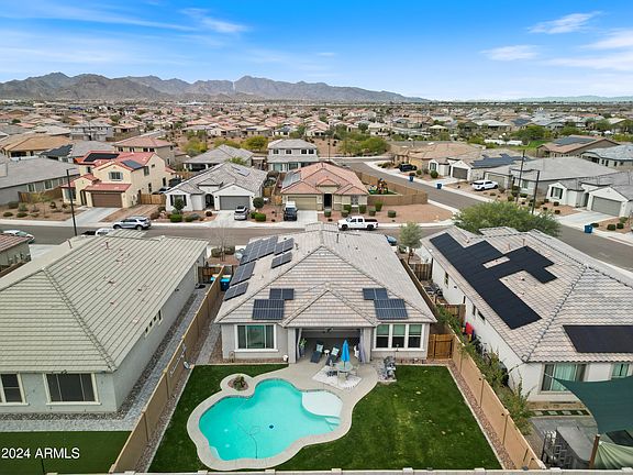 Finished immaculate single story 4 bed 3 bath home beautiful inside & out within Blue Horizons! Seller willing to make solar payments for June & July this summer. Large entry hall and 9 foot ceiling invite you into spacious white kitchen with country charm and unique subway tile backsplash, and a large island with breakfast bar. Solar, fully landscaped yard with heat-treated patio surface and a sparkling large play pool! Master is a tranquil retreat spa-like master bath and walk in shower with separate his/her sinks. Plenty of room in the secondary bedrooms for a large family or private den/craft room and guest rooms with separate bathrooms for each. In-wall doggie door and fenced off dog run with real grass, pavers in the right places. Bring your furniture and suitcases a must see!