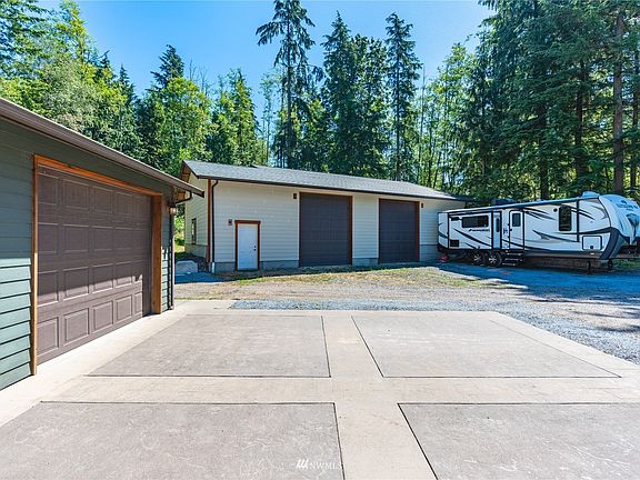 Tucked away on a private 5 ac lot close to Lynden & Blaine is this incredible home built by owner, a professional carpenter. The details and craftsmanship found throughout is apparent. Maple hardwood floors w/ incredible inlay and trim were all milled from trees on the property. Thoughtful accessible design such as no steps at entry & garage, a zero entry shower in primary & widened doors throughout, make this home wheelchair friendly. The open concept living/kitchen with custom maple cabinets and granite counters, is a perfect place for large gatherings. Oversized 2 bay, 1992sqft shop ls fully insulated w/100 amp electrical panel, Atlas 10k lb 2 post automotive lift, 13ft ceilings & a wood stove is perfect for projects during the winter.