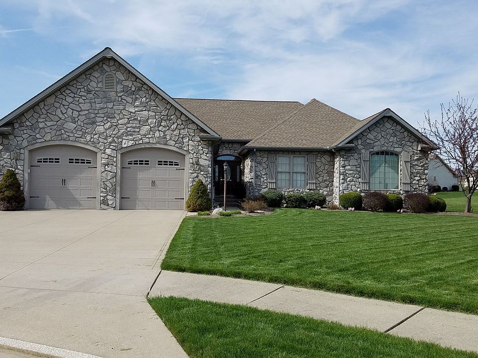 With views of the golf course, this jaw dropping 4 bedroom, 3 full bath ranch is fitted with all the bells and whistles! Grab your cookbook and check out the inspiring kitchen with gorgeous granite countertops, stainless steel appliances, integrated sink and breakfast bar. The kitchen opens to the dinette and dining room with enough seating to host the next holiday meal! Cozy up by the floor-to-ceiling stone fireplace in the great room with vaulted ceilings. 9-foot ceilings throughout the rest of the home. Generously sized bedrooms with huge windows for lots of natural light. The stunning first floor master suite features a tray ceiling, a walk-in closet with a window and a private full bath with dual sinks, jetted tub, walk-in shower and tile surround. The main full bath has a walk-in shower with tile surround and a linen closet. The entire main level and the patio have speakers which are perfect for gatherings or even turning cleaning days into a party the whole family can enjoy! First floor laundry, too! Phenomenal walkout lower level that's sure to get you excited! Open rec room area with a second kitchen, a fourth bedroom, a full bath and a bonus room/office. Perfect for entertaining or to use as a guest suite! Nearly 1,000 sq ft of extra living space! Step into your outdoor oasis including a stamped concrete patio, outdoor kitchen, whole yard irrigation system and gorgeous view of the golf course! Itâs perfectly understandable if you never want to leave. Call today!