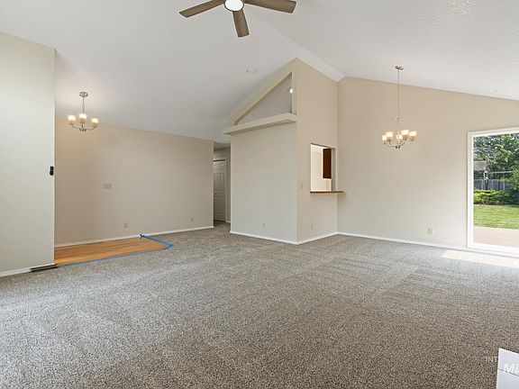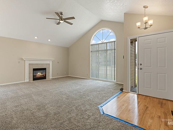 It sparkles inside. All new interior paint, carpet and vinyl flooring. Vaulted expansive open living area and formal dining with just refinished hardwood flooring in entry where you can cozy up to the fireplace, it's that time of year again. New light brushed nickel light fixtures in most of the living area. Vaulted kitchen with upgraded stainless appliances including range, microwave and dishwasher with newer sink and fixture. Kitchen cabinets were just refinished and extra storage in the food pantry. Eating area opens through a new sliding door to a new Trex deck. This is all shared with a fully fenced spacious back yard. Just minutes to the growing popular area in Meridian to the 10Mi freeway on ramp to easy access to Boise and Nampa/Caldwell.